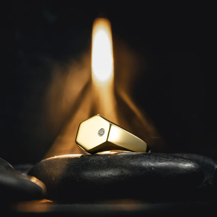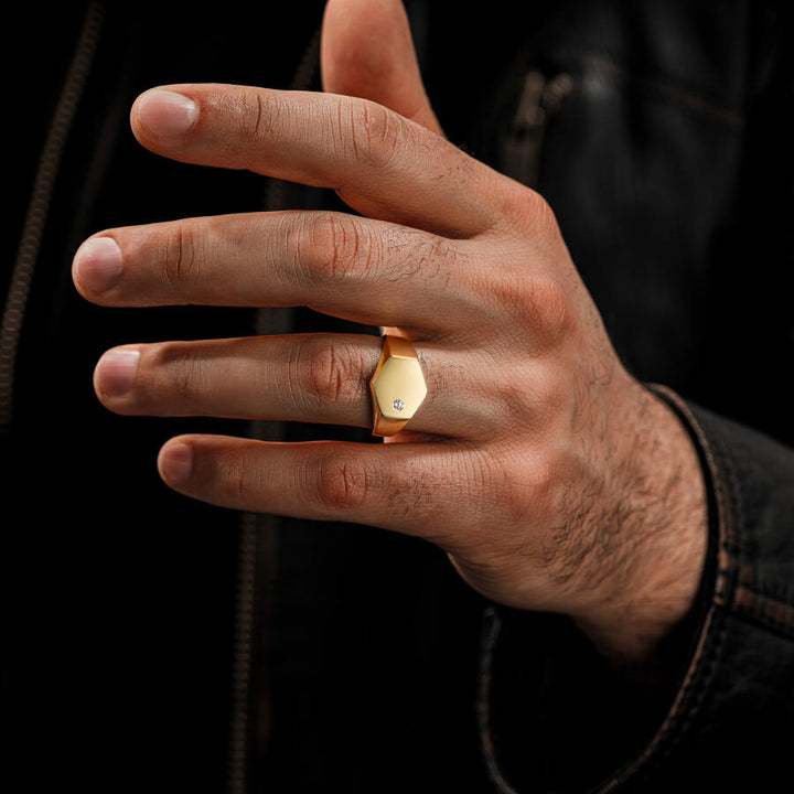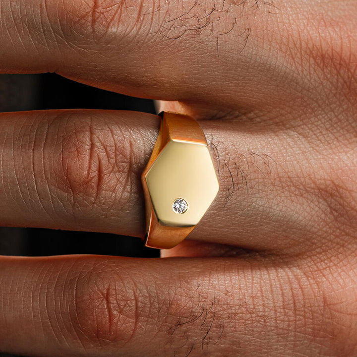 Minimalist Hexagonal Design 0.05 Carat Diamond Silver Men's Ring Gold Color