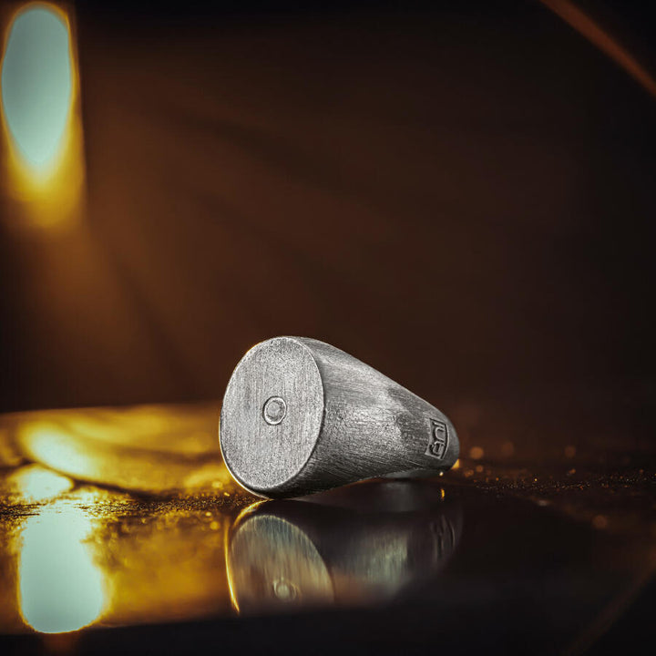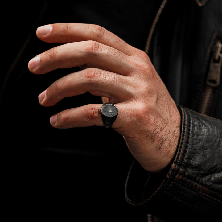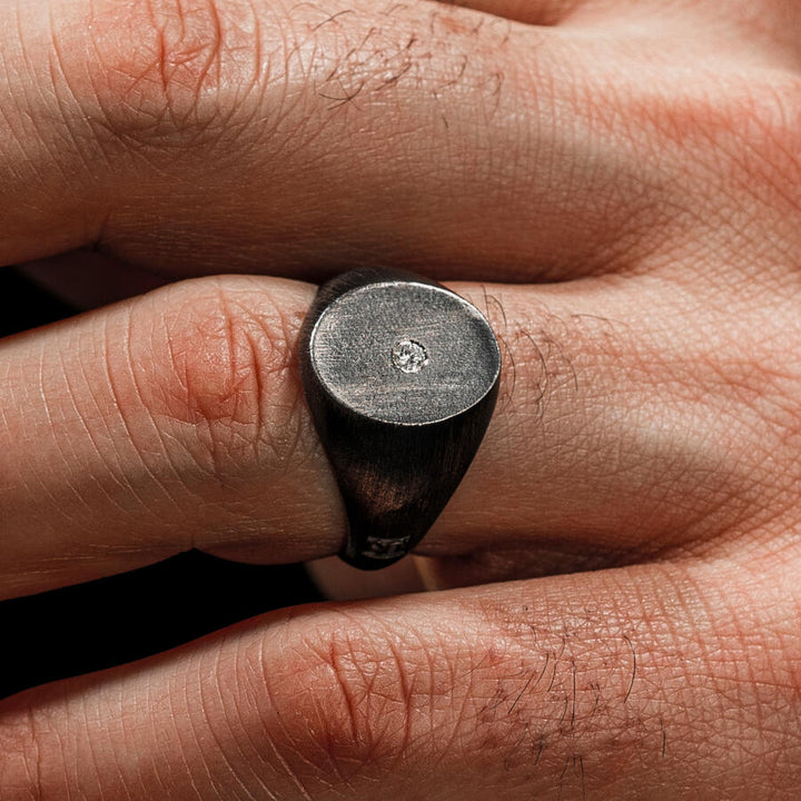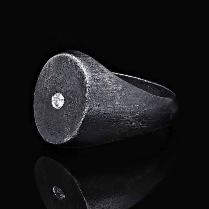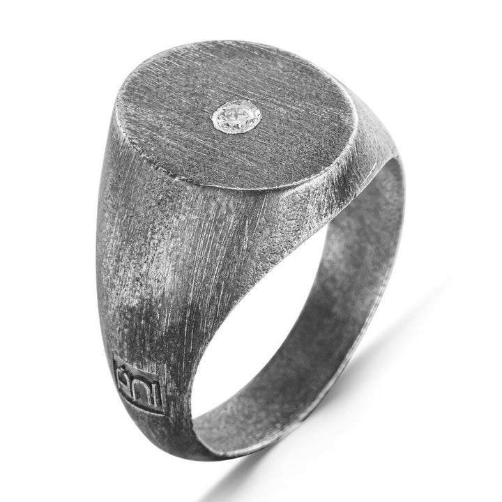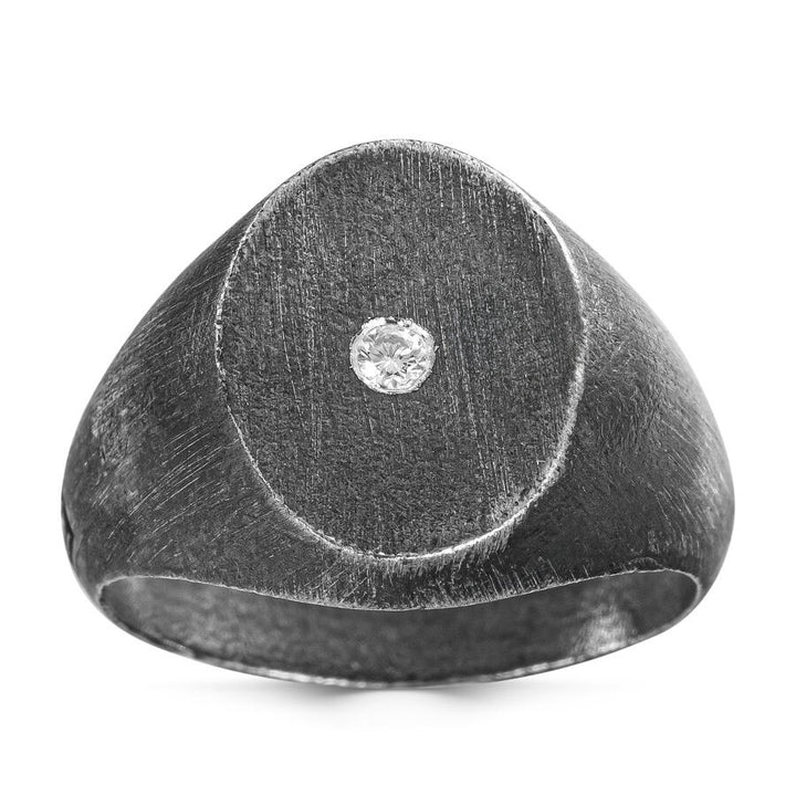 Minimalist Oval Design 0.05 Carat Diamond Antique Style Silver Men's Ring Silver Color